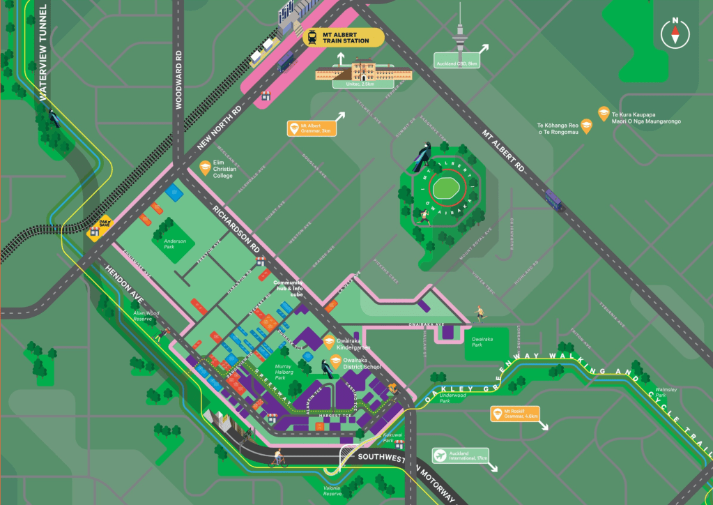 Ōwairaka is a small neighbourhood bordered by Wesley, Mt Albert, Avondale and New Windsor at the base of our beautiful maunga (mountain) Ōwairaka /Te Ahi-kā-a-Rakataura / Mt Albert, and bordered by Te Auaunga awa (also known as Oakley Creek).